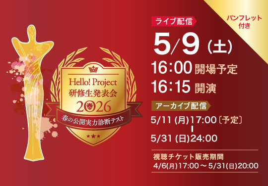 2026年5月9日(土)LINE CUBE SHIBUYAで行われる「Hello! Project 研修生発表会 2026 ~春の公開実力診断テスト~」の模様を配信いたします!
