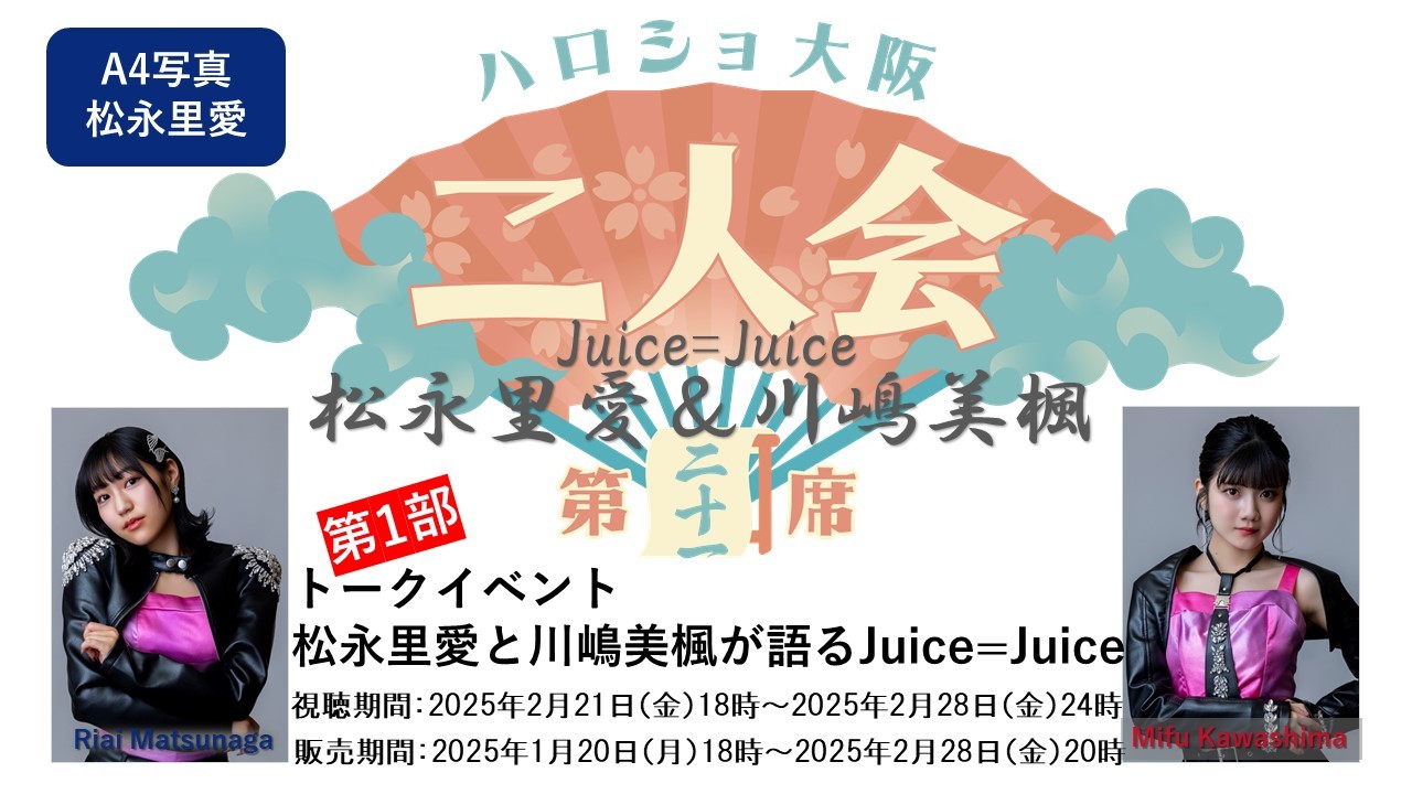「<ハロショ大阪二人会 第二十一席>~Juice=Juice松永里愛&川嶋美楓~」のイベントの模様を配信することが決定いたしました。